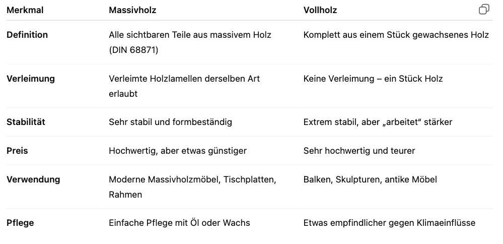 👉 Kurz gesagt: Jedes Vollholz ist Massivholz – aber nicht jedes Massivholz ist Vollholz.