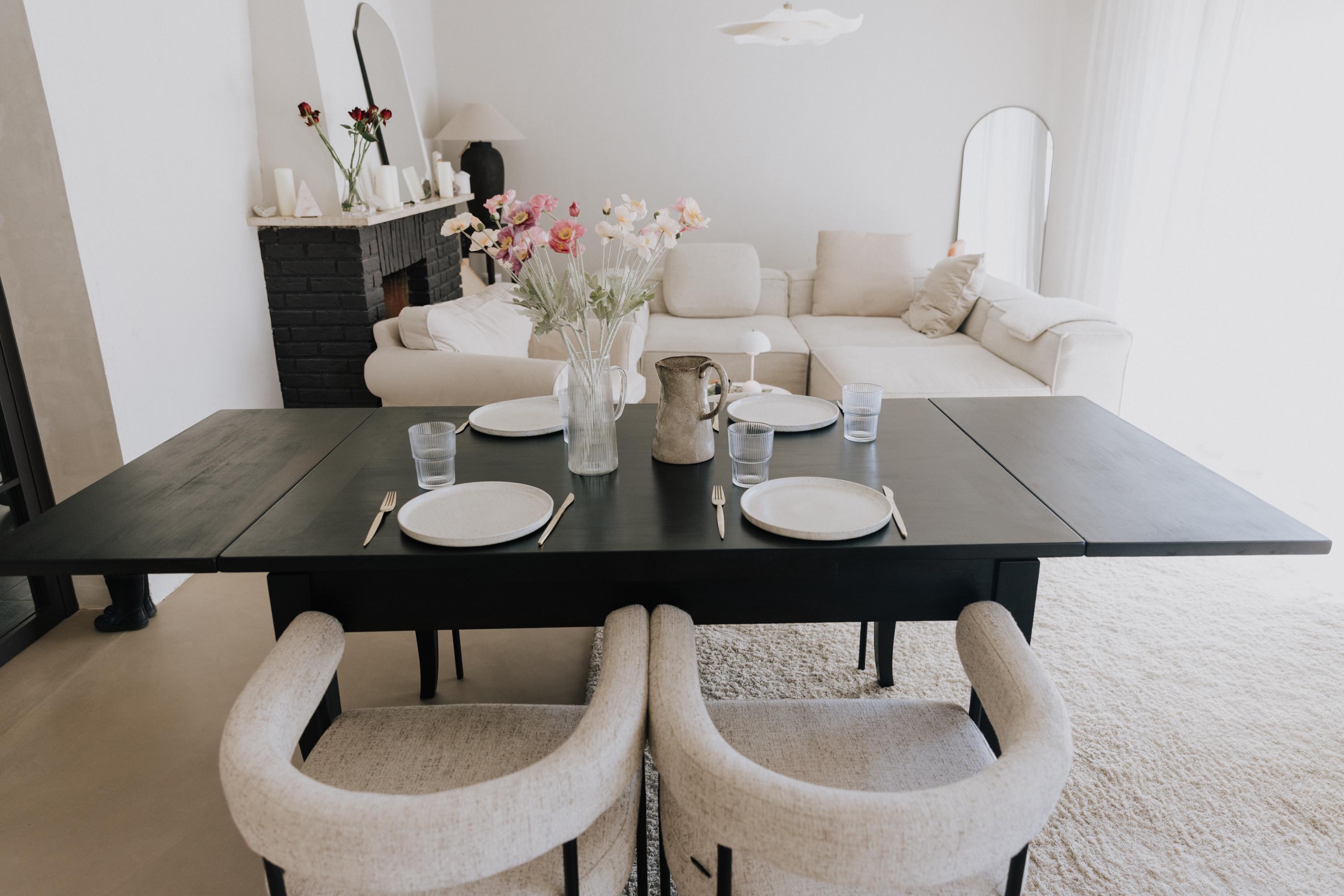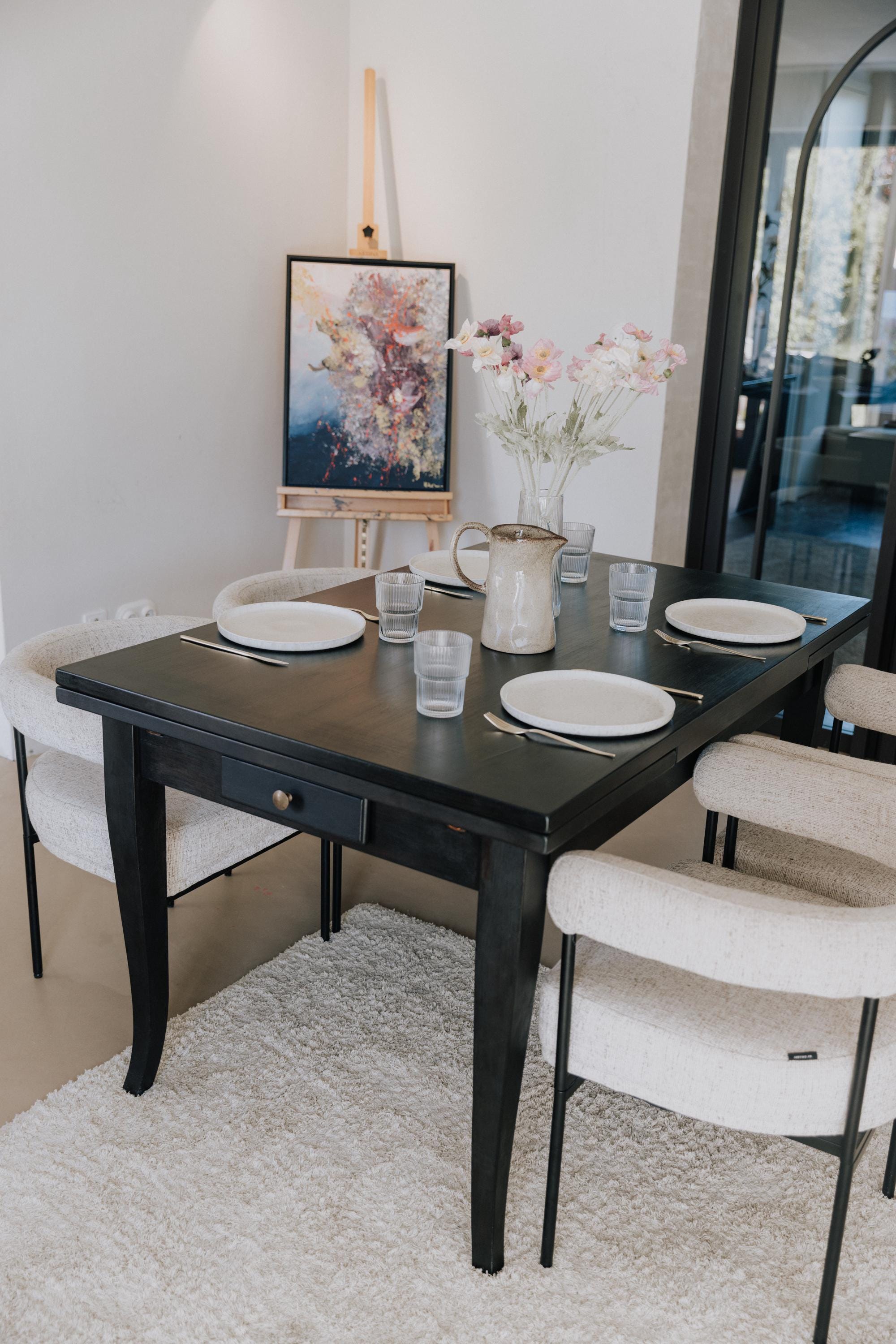 Thanks to the practical extension function, the table offers flexible seating for 6 to 8 people – ideal for family dinners, social evenings, or festive occasions. The high-quality craftsmanship of solid cherry wood ensures not only stability and durability but also a distinctive look with a natural grain.