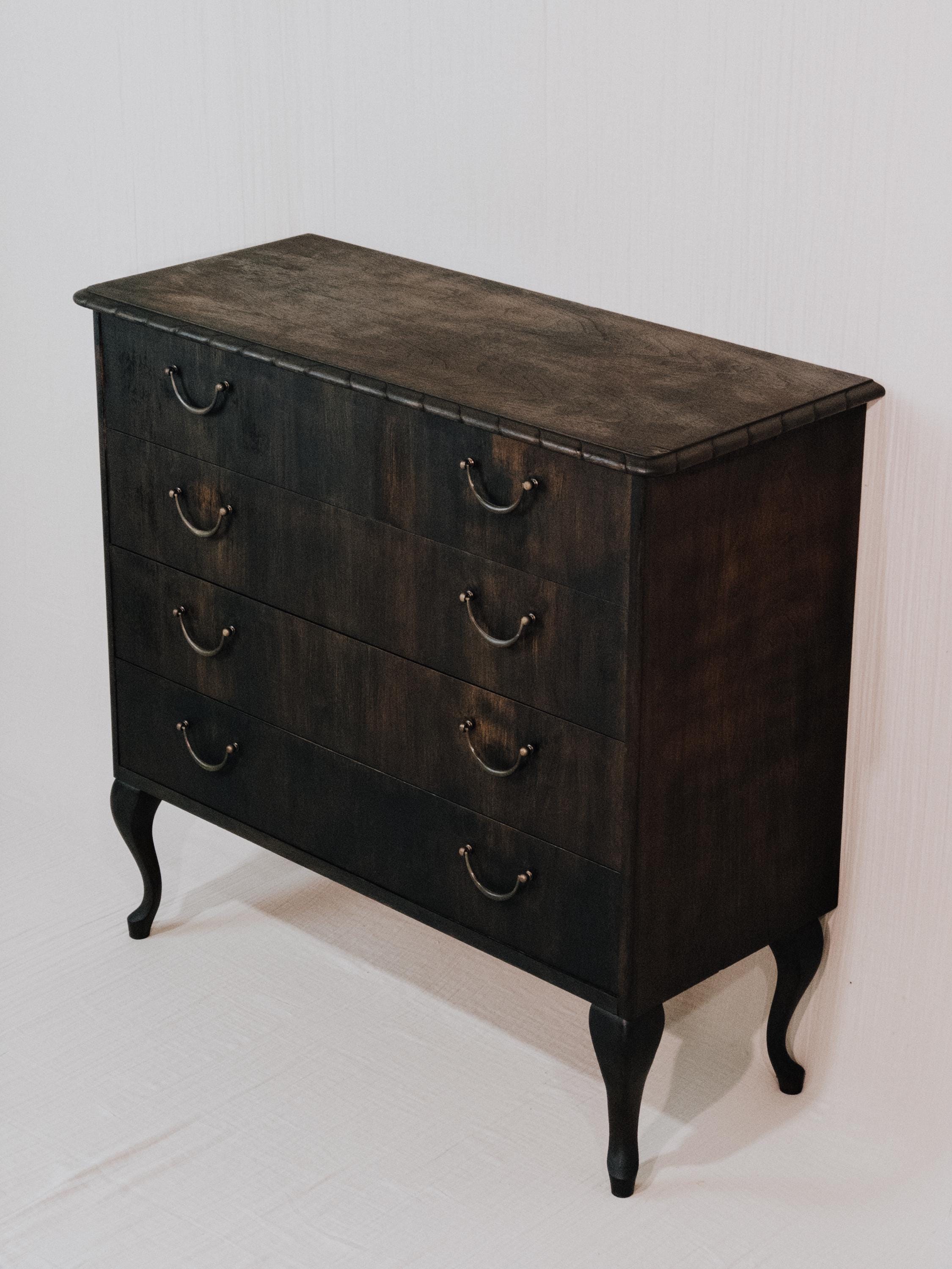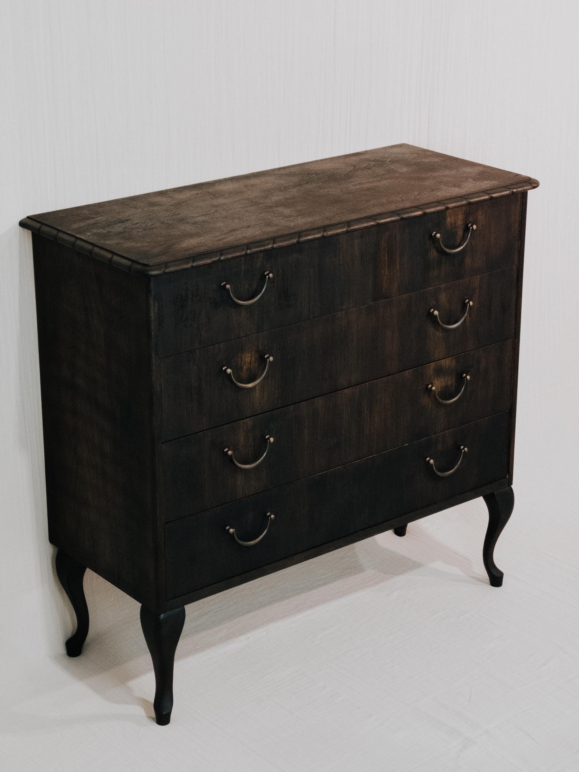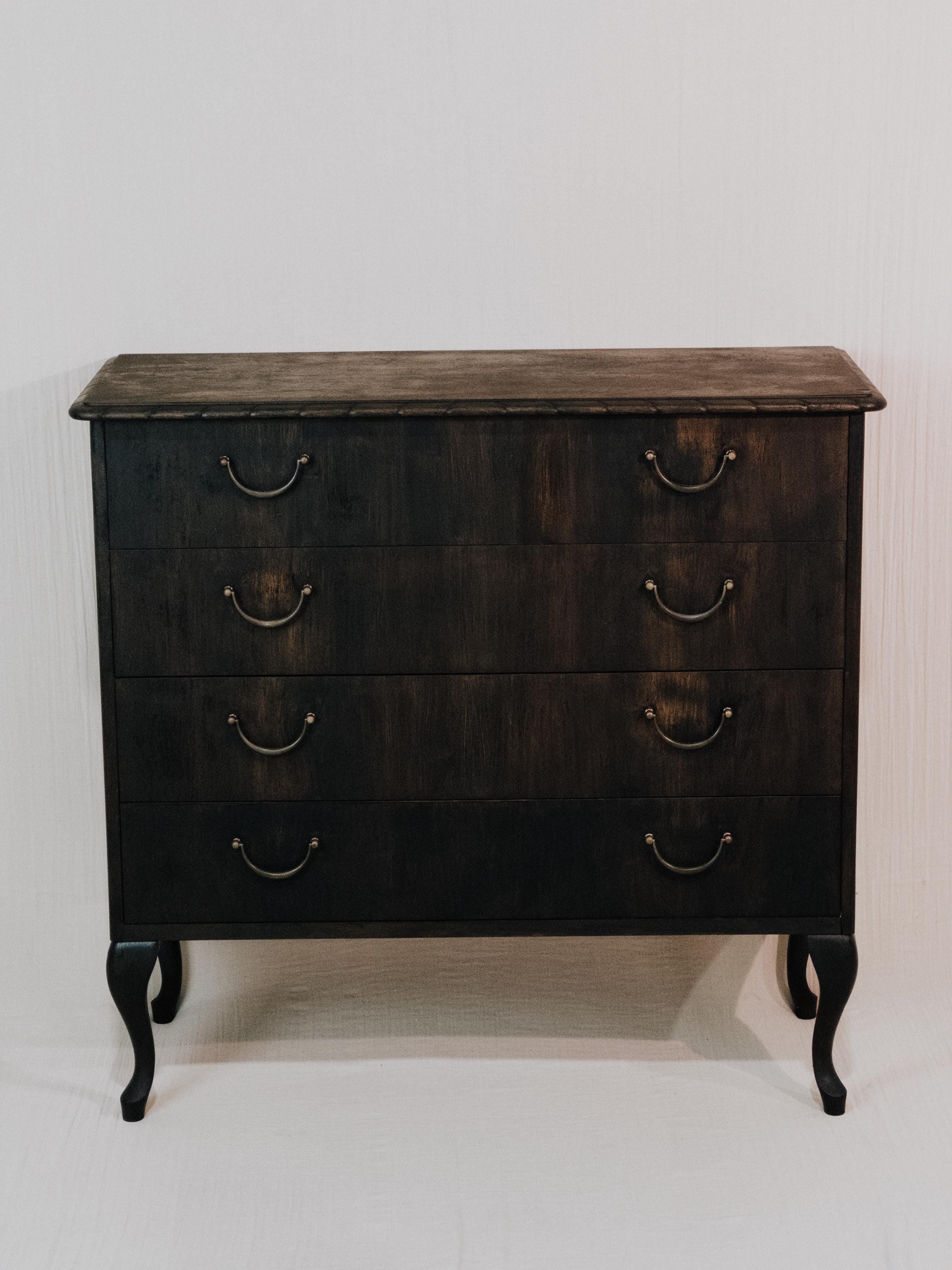 Vintage chest of drawers, antique chest of drawers, solid wood chest of drawers, chest of drawers with 4 drawers, oiled chest of drawers, stained chest of drawers, old wooden chest of drawers, restored chest of drawers, country furniture, hallway chest of drawers, bedroom chest of drawers, 1940s furniture, retro chest of drawers, mid-century furniture, chest of drawers with patina, sustainable furniture, solid wood chest of drawers, small vintage chest of drawers